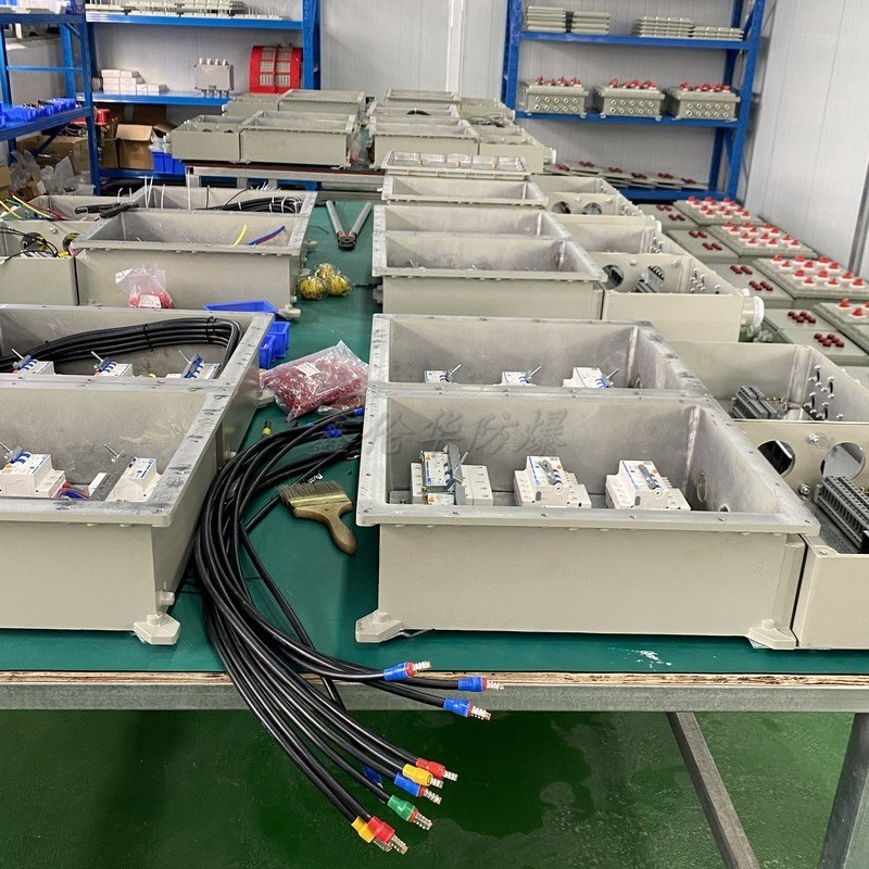 防爆配電箱采用復型模塊結構,各回路可根據(jù)用戶需要自由組裝,也可根據(jù)用戶要求特制,內(nèi)裝元件可根據(jù)用戶要求安裝高分斷路器或塑殼式斷路器,一般情況下,防爆配電箱采用的是隔爆型結構,母線箱及出線箱則采用增安型結構。