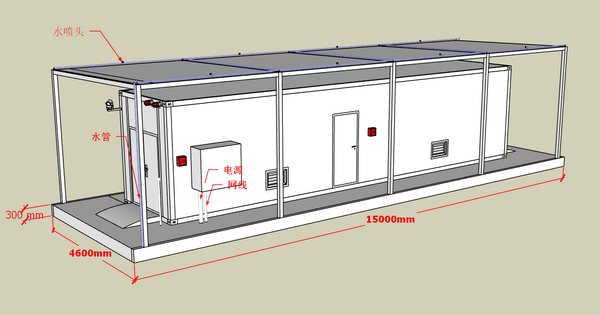 1、安裝基礎(chǔ):箱體尺寸為12190*2350*2600mm,承載地基使用≧C25混凝土結(jié)構(gòu),尺寸為15000*4600*300mm,預留水、網(wǎng)線、主電源管道。